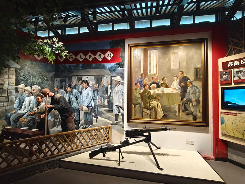 追尋一個個紅色印記,傾聽一個個紅色故事。黨員們沿著青石板路步入李巷深處,參觀了中國新四軍歷史研究館、抗日同志紀念館、新四軍領(lǐng)導人舊居等。同志們或駐足觀看,或交流感悟,一個個真實場景、一件件珍貴文物、一張張歷史照片,彷佛將大家?guī)Щ亓四嵌纹D苦卓絕的崢嶸歲月,也讓大家對黨組織帶領(lǐng)人民開展抗日斗爭的偉大歷程和光輝業(yè)績有了更加深入的了解。紅色李巷的“紅”,是革命斗爭的燎原星火,是先輩英烈的殷紅鮮血,是民族復興的火紅理想。