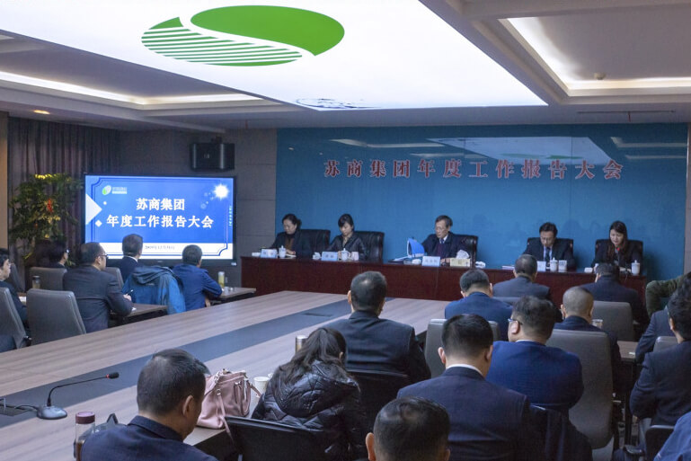 12月31日14:30,蘇商集團(tuán)2019年度工作報(bào)告大會(huì)在華智園會(huì)議中心隆重召開(kāi)。集團(tuán)貿(mào)易部、大匯盈商業(yè)、河南特車(chē)和金城軌道的代表匯報(bào)了2019年工作和2020年工作計(jì)劃;蘇商集團(tuán)陳家俊董事長(zhǎng)作2019年工作報(bào)告,對(duì)集團(tuán)2019年的工作作了總結(jié),詳細(xì)地闡述了集團(tuán)2020年三大發(fā)展戰(zhàn)略,明確了集團(tuán)2020年奮斗目標(biāo),部署了集團(tuán)2020年主要工作。