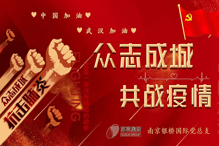 繼向革命老區(qū)、江寧濱江開發(fā)區(qū)、中華門街道和有關(guān)業(yè)務(wù)單位捐贈數(shù)十萬元物資后,2020年3月6日下午,南京銀橋國際黨總支在蘇商集團(tuán)總部舉行“助力武漢”捐款活動。蘇商集團(tuán)董事長陳家俊先生、黨總支書記陳雪梅女士、集團(tuán)本部和南京銀橋國際全體黨員、積極分子以及干部、員工共40余人參加了捐款活動,共募集款項近兩萬元。在這次捐款活動中,全體黨員和積極分子均主動捐款,無一缺席;非黨員員工也紛紛獻(xiàn)出自己的愛心,連剛?cè)肼殠滋斓膯T工也主動捐款;有的員工因工作錯過了捐款活動,事后特地補交了捐款;多名退休的老同志在家中聽說了捐款活動,主動打電話來要求捐款。