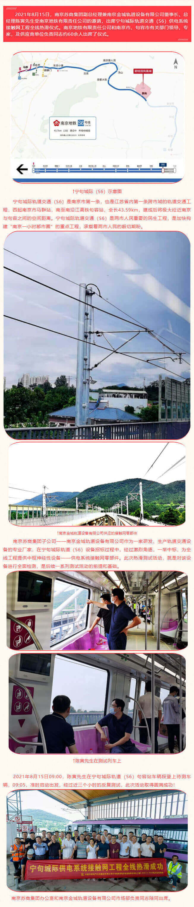 南京蘇商集團(tuán)副總經(jīng)理陳寅先生受邀出席寧句城際輕軌供電系統(tǒng)接觸網(wǎng)工程全程熱滑儀式