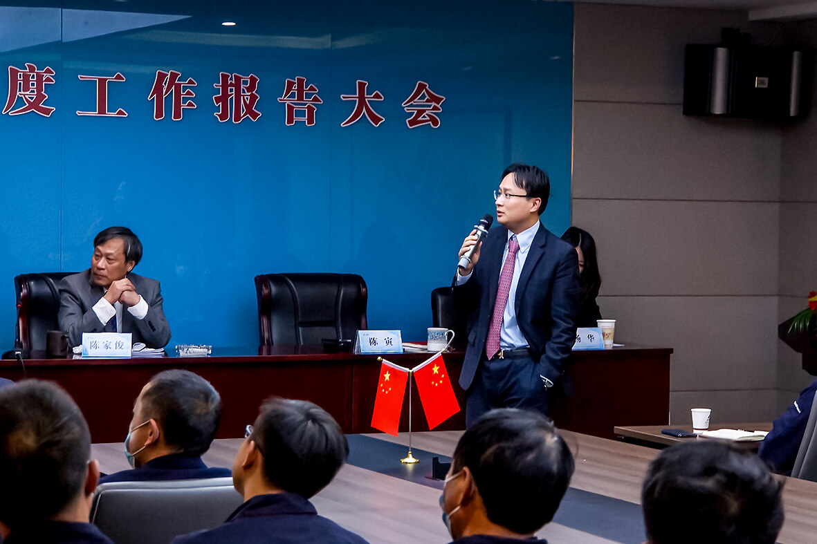 最后,蘇商集團董事長陳家俊先生作了題為《堅守底線保穩(wěn)健 提質(zhì)增效再出發(fā)》的工作報告,他在全面總結(jié)2021年工作時強調(diào),盡管過去一年受到了新冠疫情不斷反復(fù)、原材料漲價、全國限產(chǎn)限電等因素的影響,但蘇商人臨危不亂,戮力同心,拼搏進取,集團仍然取得了喜人的成績。全年實現(xiàn)銷售收入超10億元,利潤超1億元,納稅超4000萬元。他在部署2022年工作時,分析了集團所面臨的形勢,明確了戰(zhàn)略方向,下達了總體目標,提出了總體工作要求。