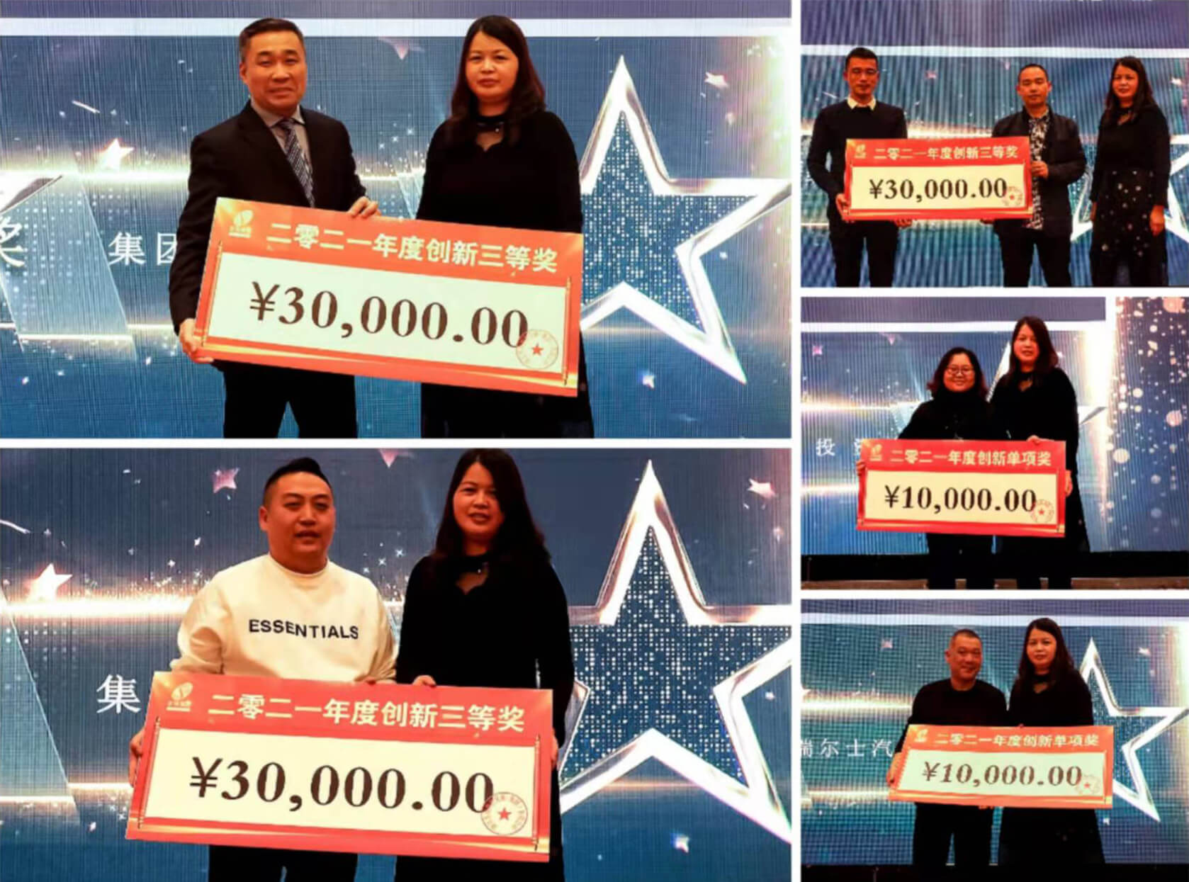 接著,集團副總經(jīng)理陳寅先生和集團總經(jīng)理助理楊華女士為獲得2021年度“創(chuàng)新二等獎”、“創(chuàng)新三等獎”以及“創(chuàng)新單項獎”的集體頒發(fā)獎金。
